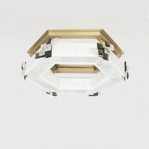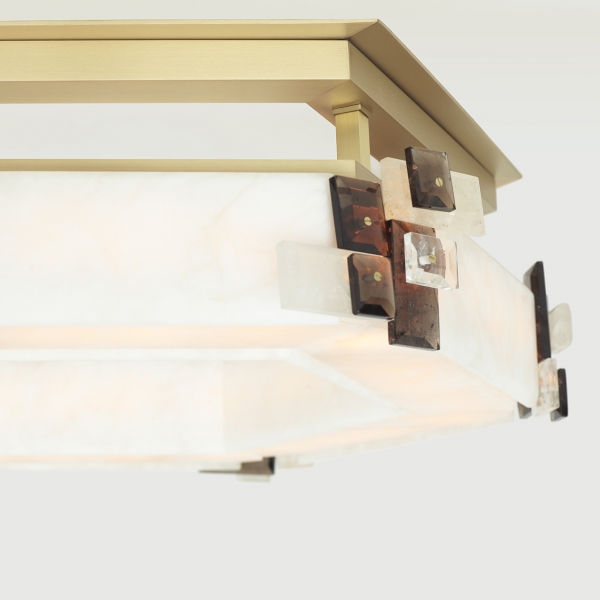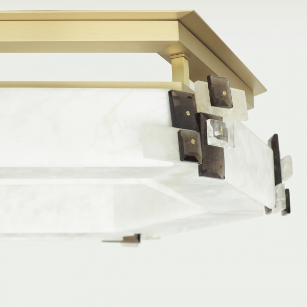 Satin bronze, smoky rock crystal, rock crystal and European alabaster
