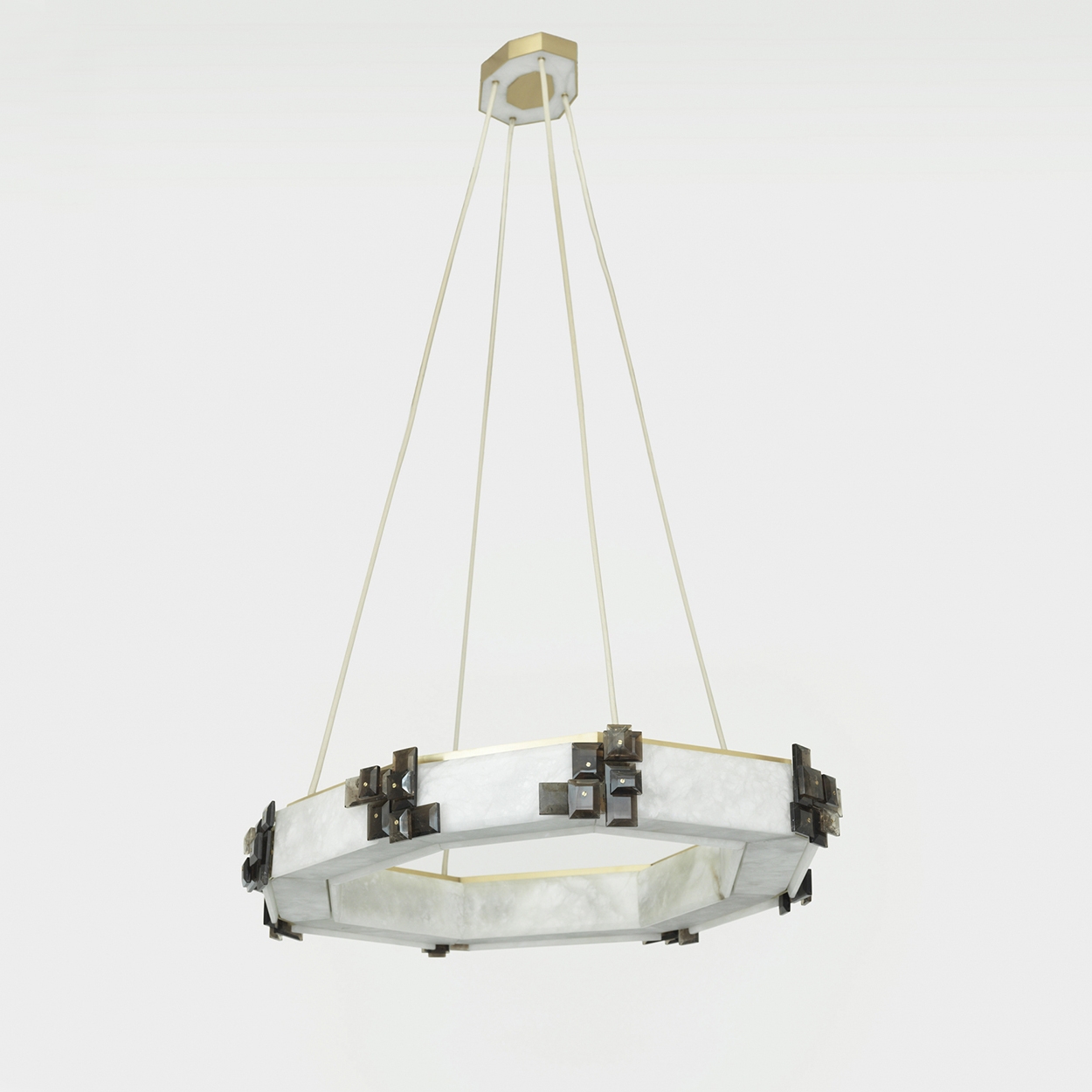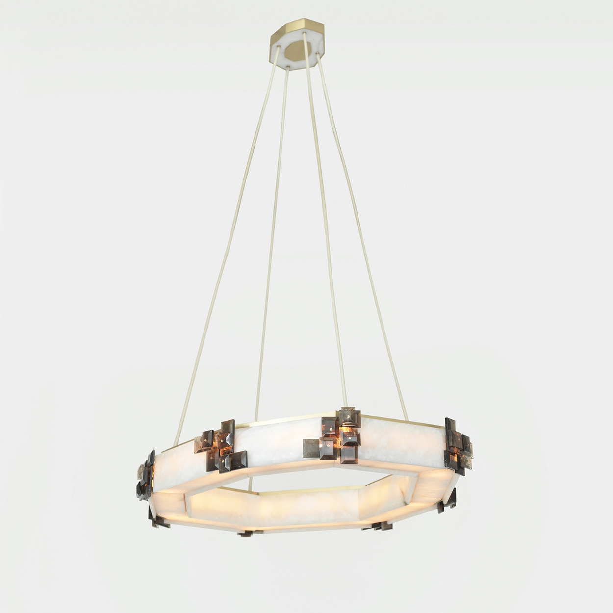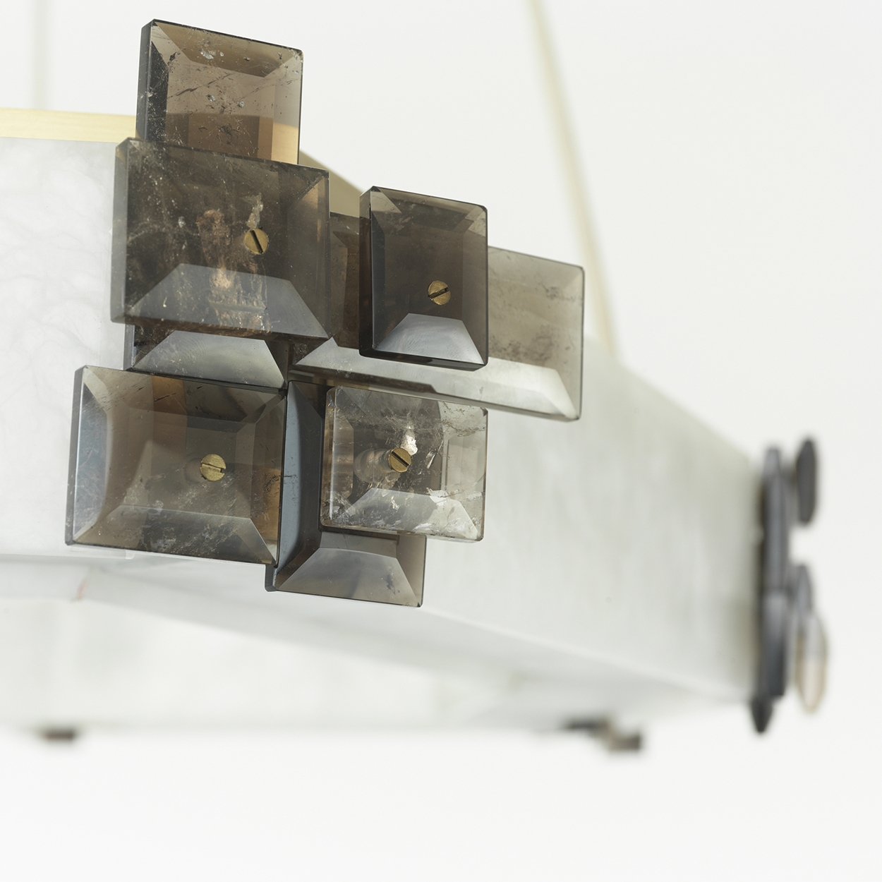 Satin bronze, smoky rock crystal and European alabaster